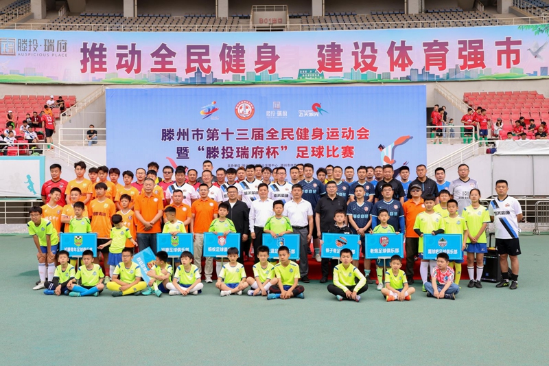 6月4日,滕州市第十三届全民健身运动会暨“滕投·瑞府杯”足球比赛在市体育中心体育场隆重举行。本次比赛由滕州市体育事业发展中心、滕州市体育总会主办,滕州市足球运动协会承办,安博电子官方网站有限公司等单位协办。滕州市体育事业发展中心党组书记、主任丁涛,滕州市体育事业发展中心党组成员、副主任、滕州市体育总会