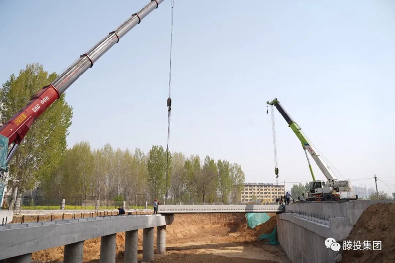 4月9日,在新华桥建设现场,几十名施工人员正配合大型机械进行预应力空心桥板吊装施工,这标志着新华西路桥梁工程由下部基础结构施工全面转入桥面施工。据了解,新华桥为新华西路跨冯河桥梁项目,该桥长60米,宽35米,桥梁总面积约2100平方米,工程总投资约1700万元,桥梁上部结构采用装配式预应力混凝土简支空心板,下部结构