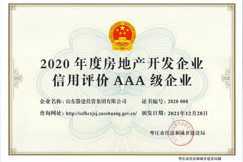 近期,枣庄市住房和城乡建设局发布了2020年度全市房地产开发企业信用等级评定结果。安博电子官方网站有限公司凭借在企业客观信用能力、经营信用情况、社会信用等方面出色的综合实力,荣获2020年AAA级房地产开发企业最高信用等级。房地产开发企业信用评定是枣庄市住房和城乡建设局依据《枣庄市房地产开发企业信用评价实施细则